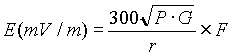 式中: P──发射机功率,KW; G──相对于半波偶极子的天线增益,DB; r──被测点与发射天线的距离,Km; F(θ)──天线垂直面方向性函数(视天线型式和层数而异)。 A.2.5.4 雷达等微波功率密度S计算公式: